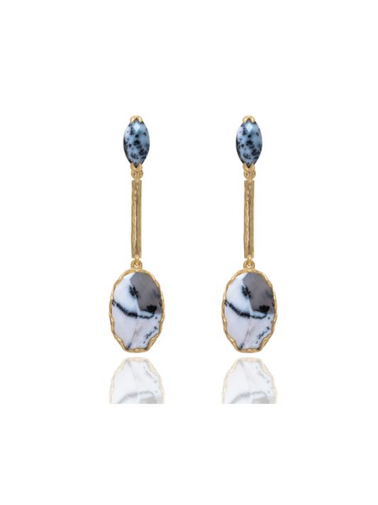 India Affair Dendritic Opal Drop Earrings / Gold