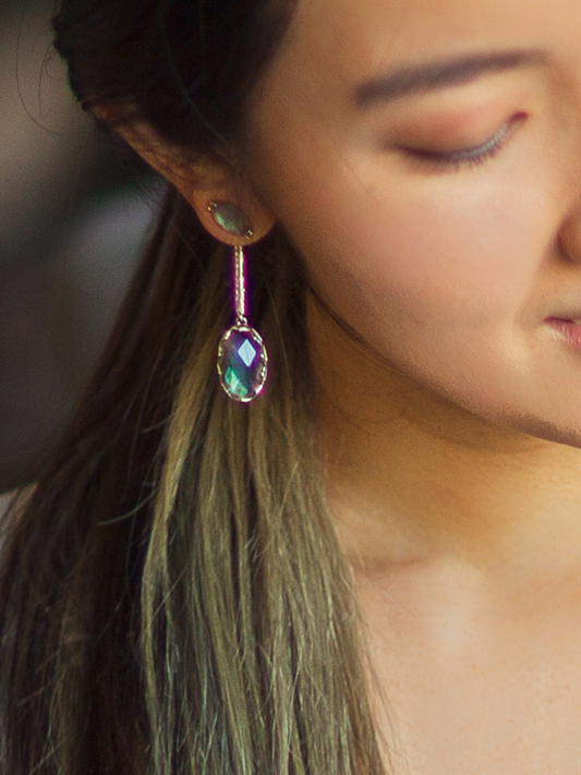 India Affair Labradorite Drop Earrings / Silver