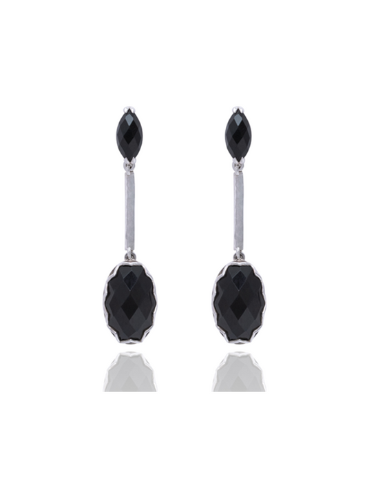 India Affair Black Obsidian Drop Earrings / Silver
