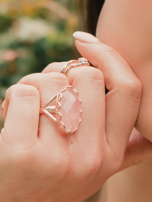 India Affair Rose Quartz Cocktail Ring / Rose Gold