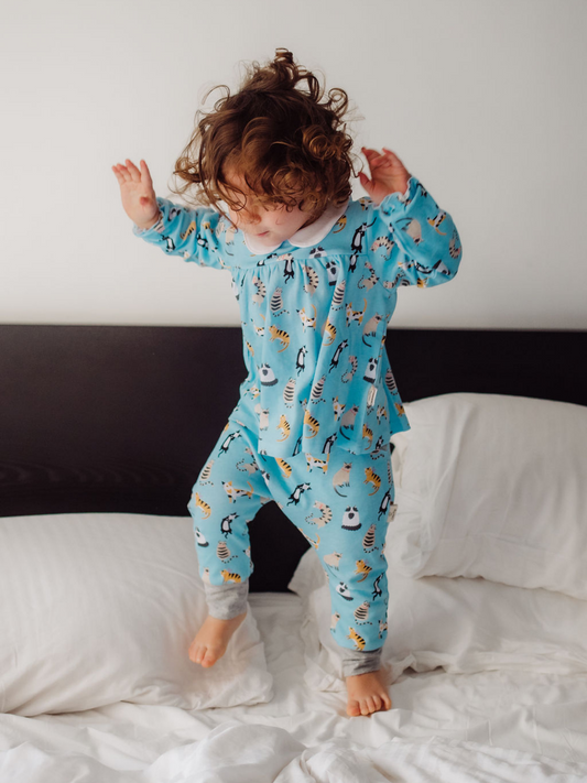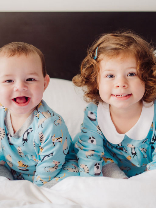 Juego de regalo de blusa y pantalones reversibles para la hora del té de Playful Cats