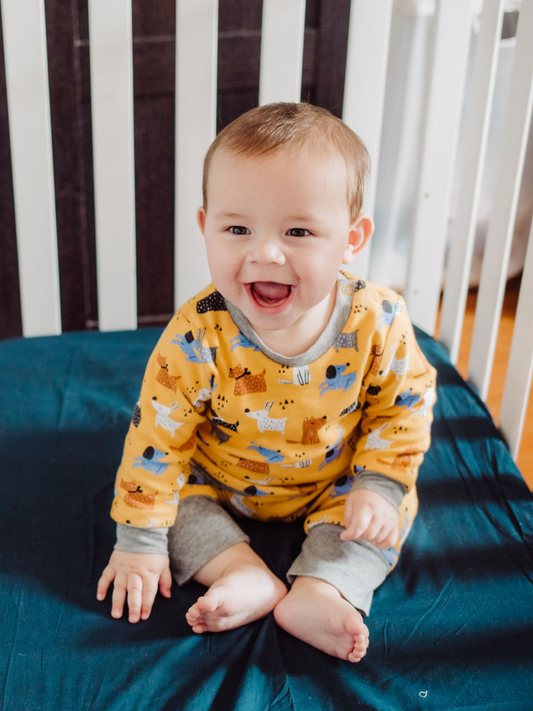Juego de regalo de blusa y pantalones reversibles para la hora del té de Colorful Dogs